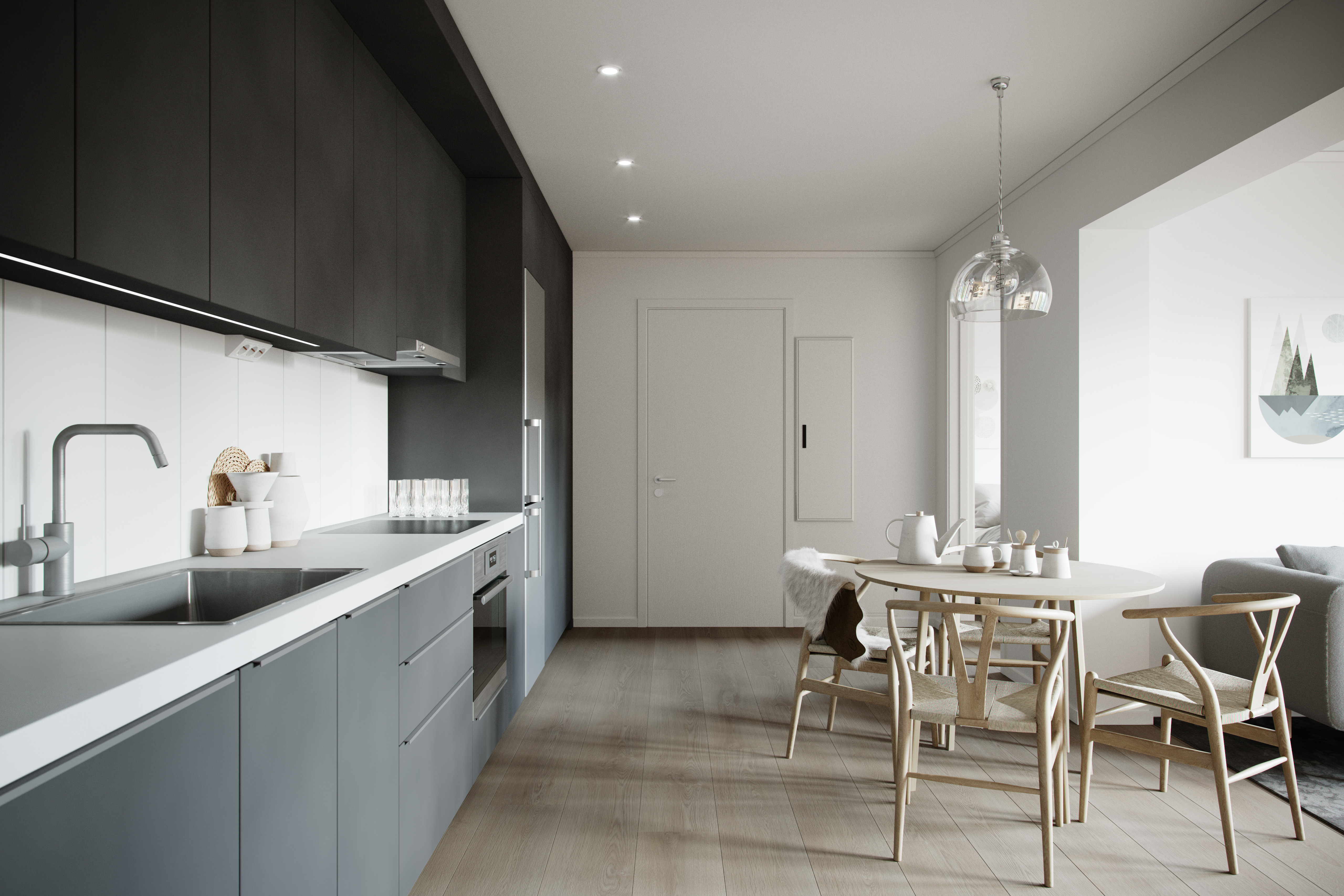 Kök och vardagsrum samspelar i en öppen planlösning som skapar rymd och fina sociala ytor. Ljusa väggar i kombination med parkettgolv ger en modern och trivsam känsla. Det helkaklade badrummet är utrustat med dusch samt kombinerad tvätt- och torkmaskin för extra bekvämlighet i vardagen.