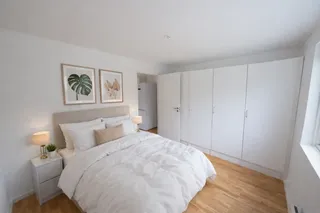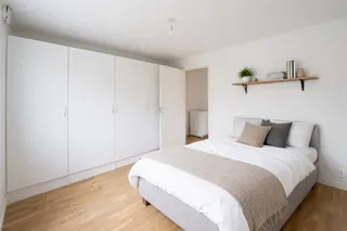 Lägenheten har genomgående ljusa ytskikt och slitstarka golv som ger ett enhetligt och ombonat helhetsintryck. Den avskilda sovdelen skapar en naturlig uppdelning mellan sällskapsytor och vila.