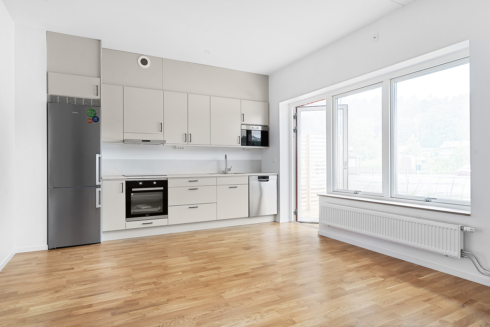 Den är utrustad med bekvämligheter som diskmaskin, tvättmaskin och torktumlare – perfekt för en smidig vardag.